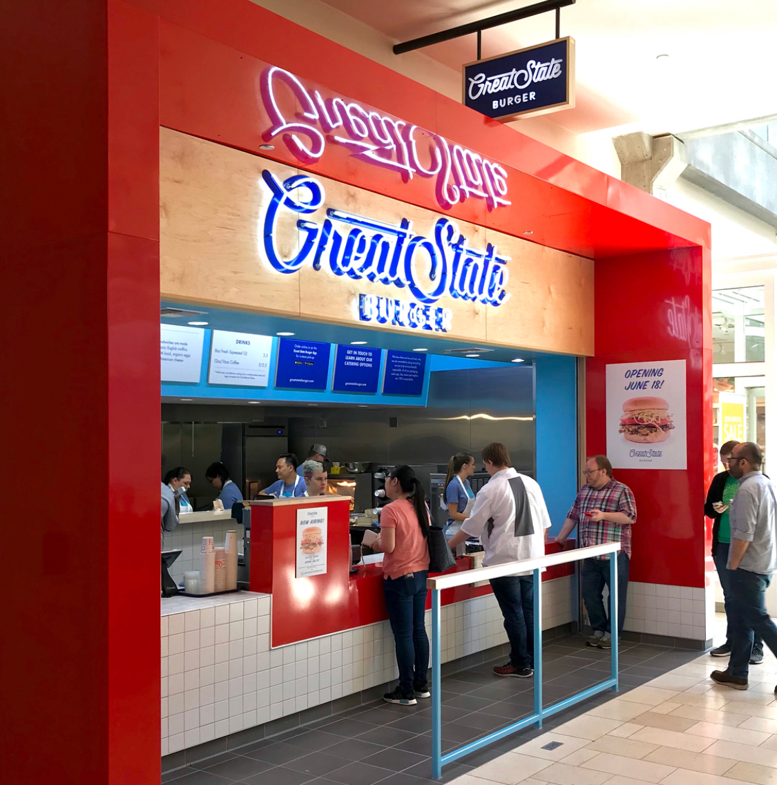 Great State Burger, the fast casual classic burger restaurant has opened on the second floor of Bellevue Square between Starbucks and Gymboree.